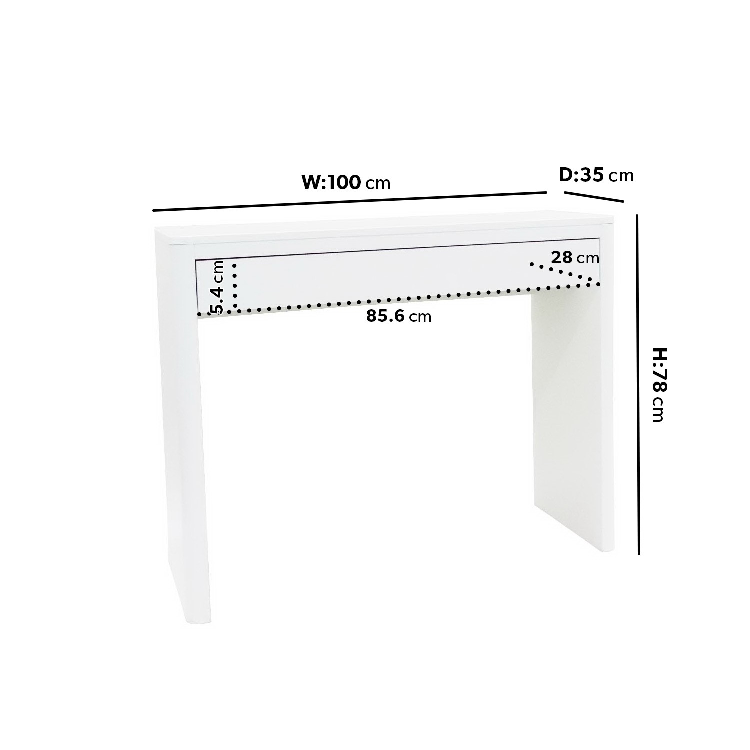 White High Gloss Dressing Table with Drawer and Curved Edges – Lexi