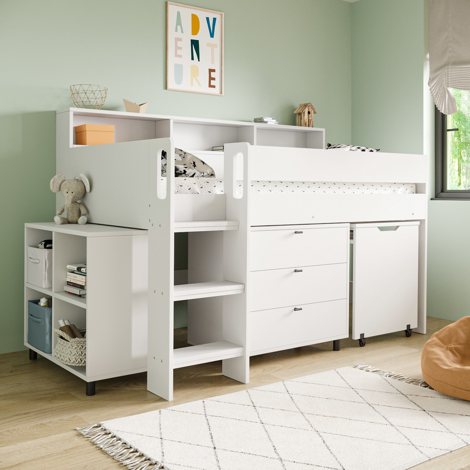 White Mid Sleeper Cabin Bed with Desk and Storage – Aire