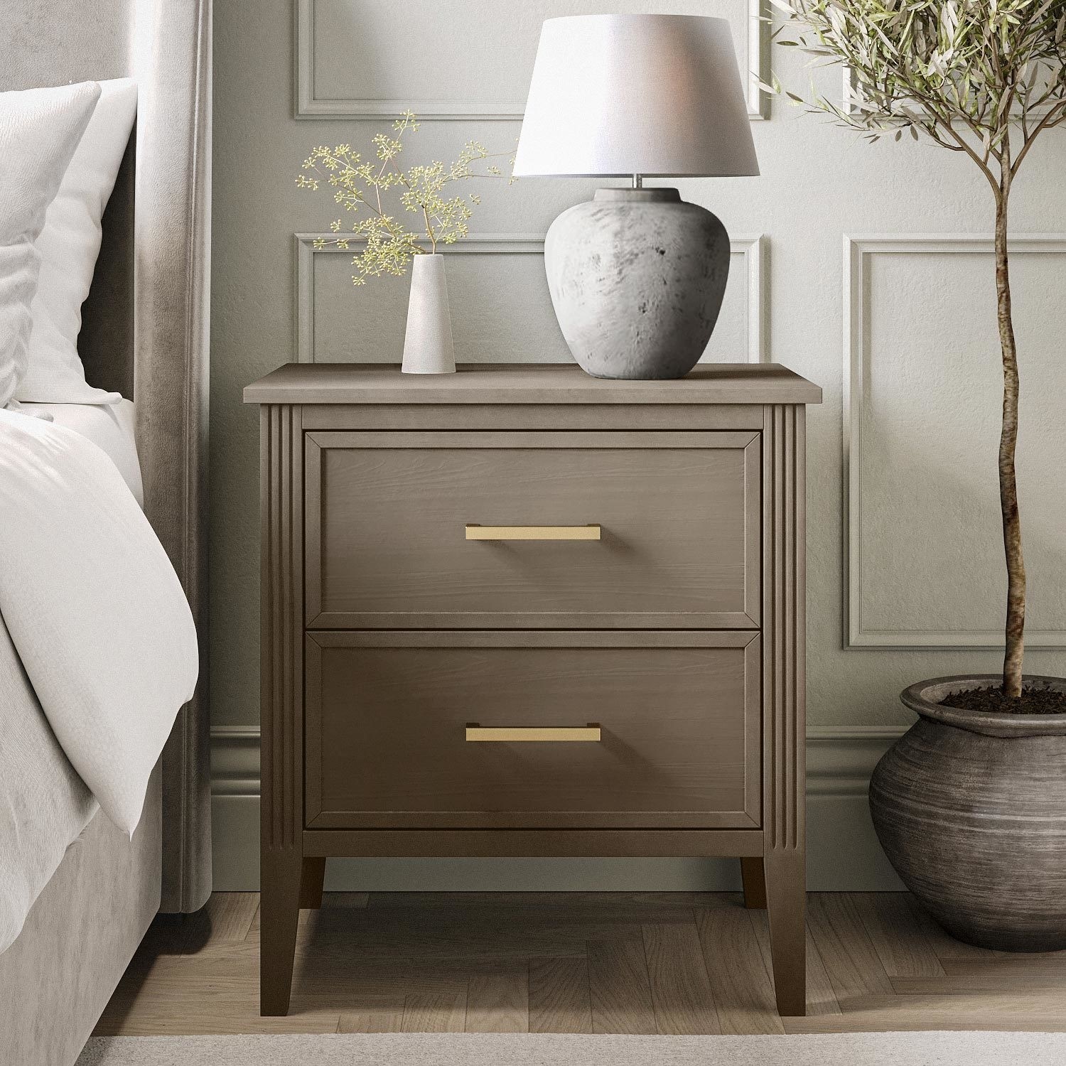 Wide Dark Wood 2-Drawer Bedside Table – Delilah