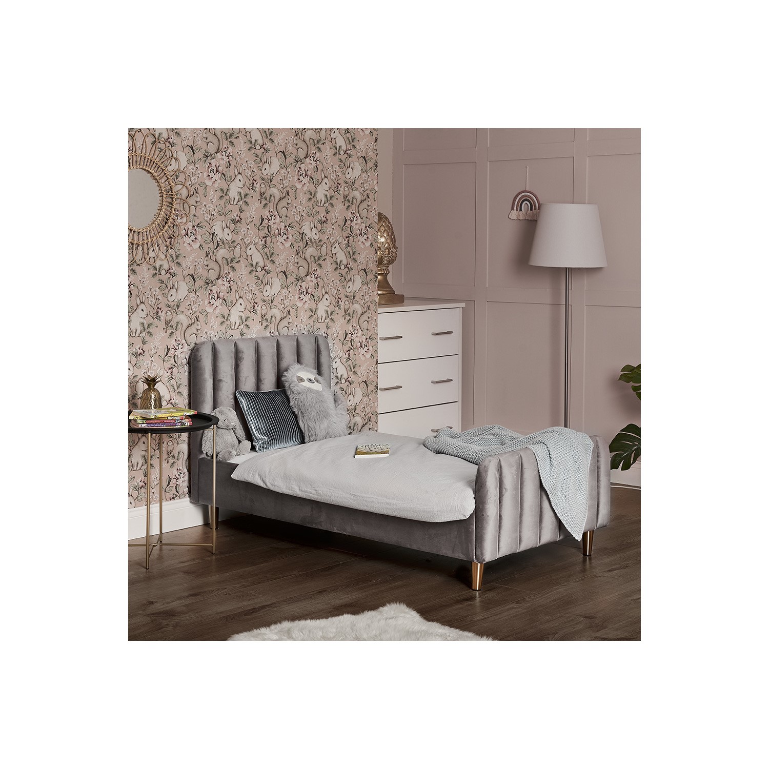 Toddler Bed Frame in Grey Velvet – Lumi – Obaby