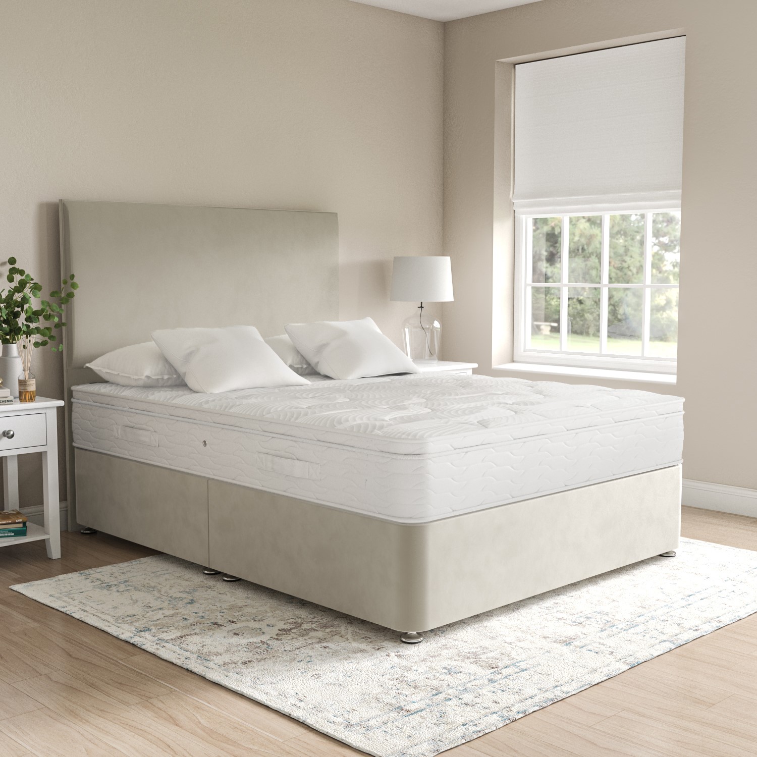 Beige Velvet Single Divan Bed with Plain Headboard – Langston