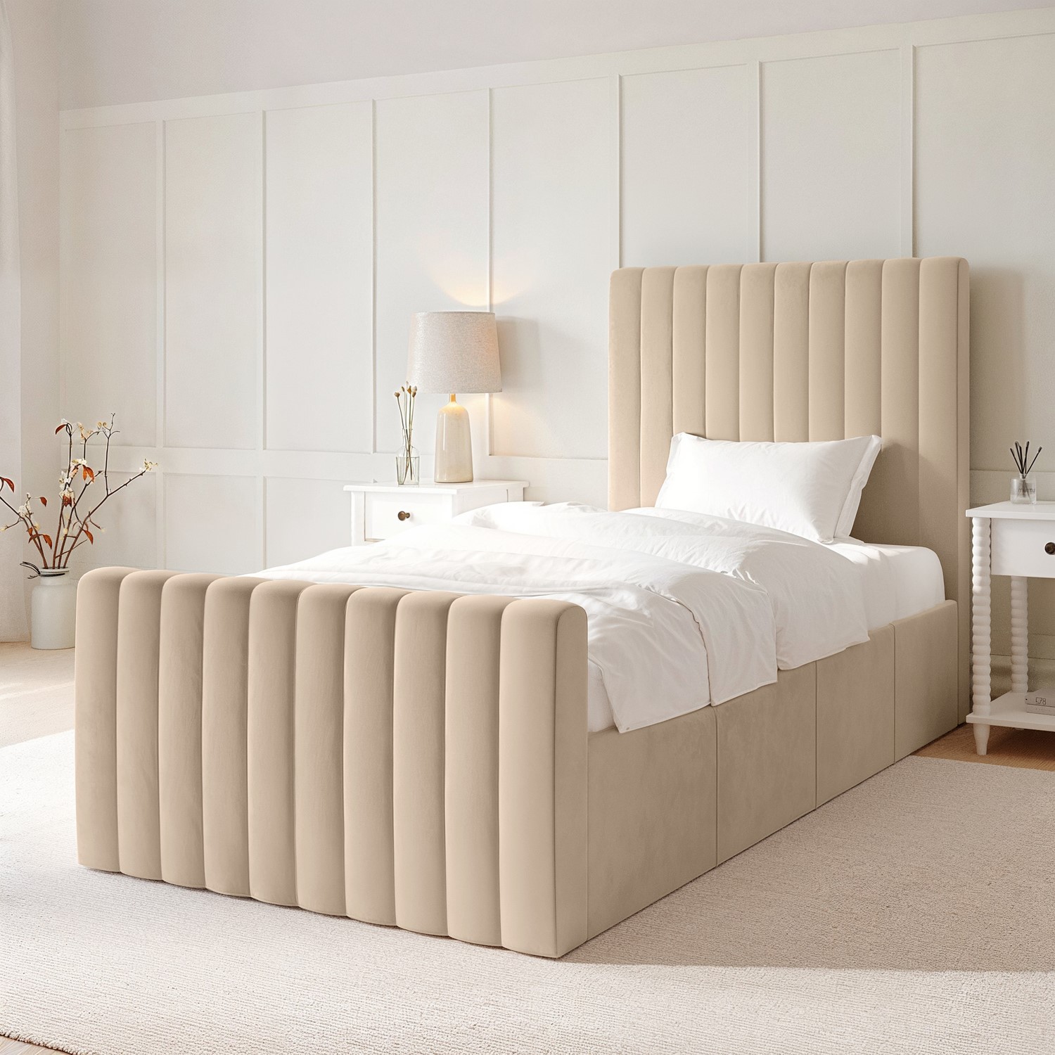 Beige Velvet Single Side-Lift Ottoman Bed – Khloe